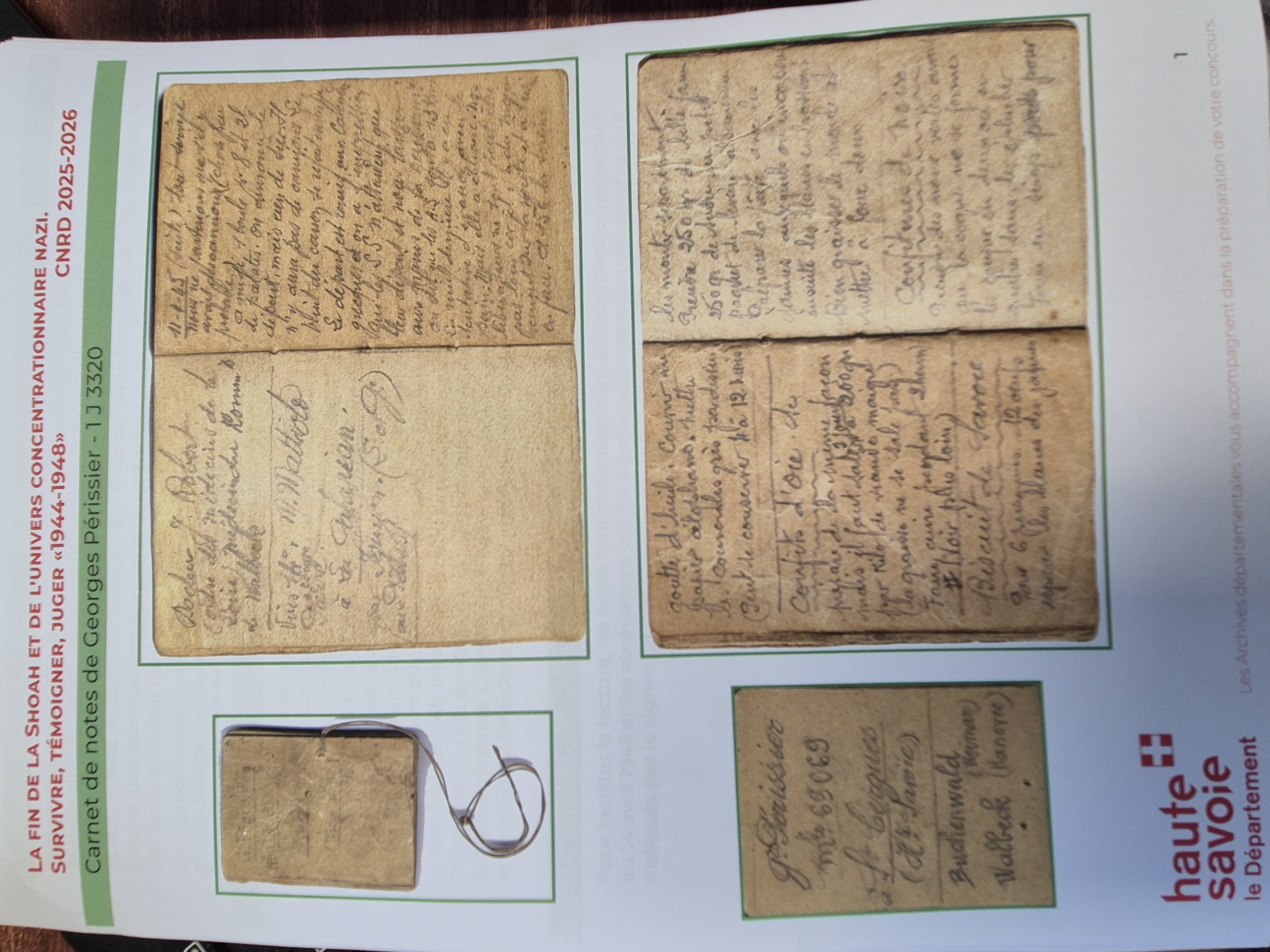Mardi 27 et vendredi 30 janvier 2026, tous les élèves de 3e ont pu travailler avec Denis MARTIN des archives départementales sur un document d’archives : le carnet de notes de Georges Périssier. Les élèves ont pu relever les éléments montrant les souffrances physiques et morales, ses mécanismes de survie, l’effondrement du système concentrationnaire et l’imminence de la Libération.