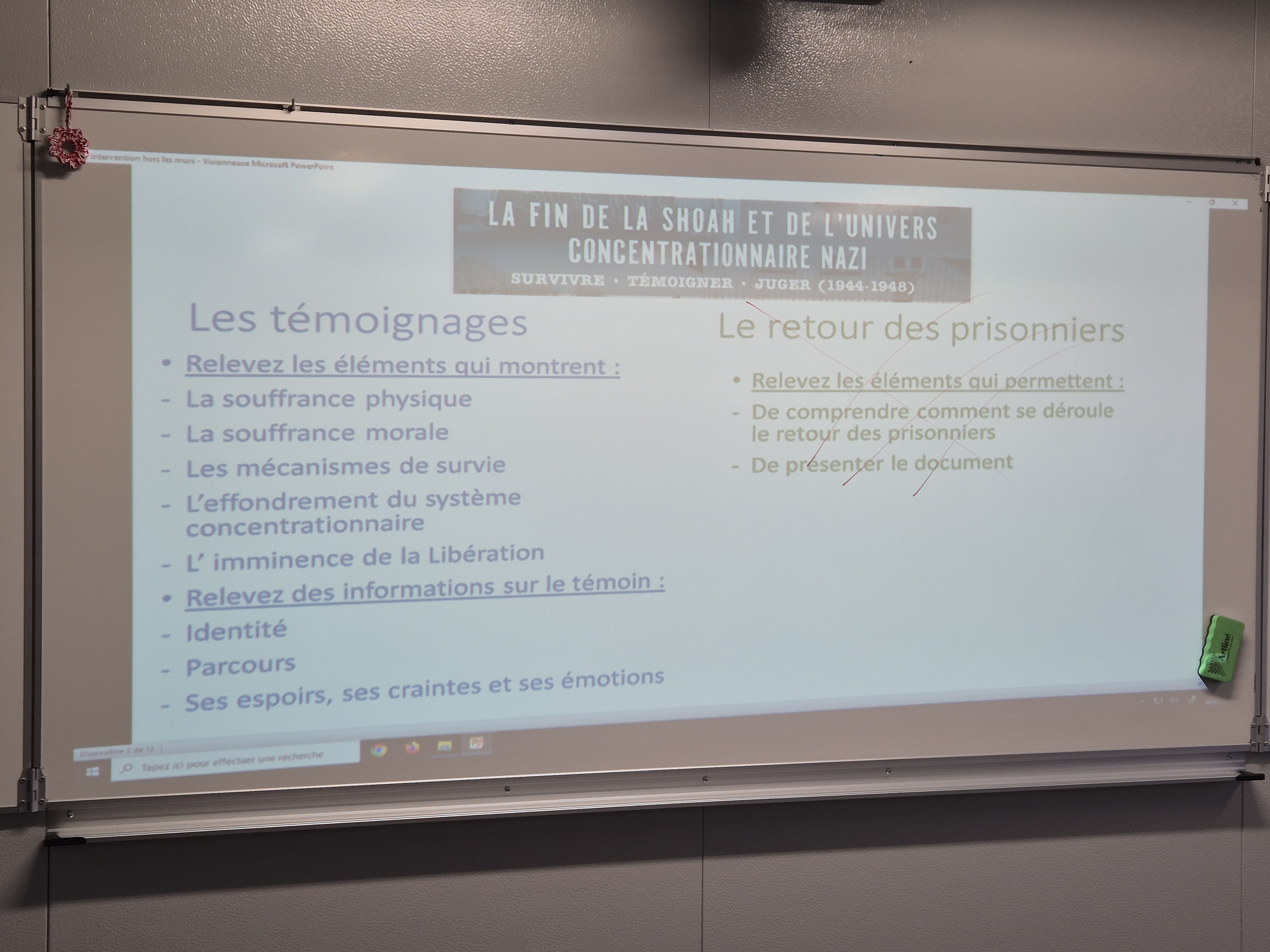 Cela leur a permis d’avoir un bon exemple précis et de réfléchir à la thématique « la fin de la Shoah et de l’univers concentrationnaire nazi. Survivre, témoigner, juger » en vue des écrits du CNRD qui auront lieu fin mars.