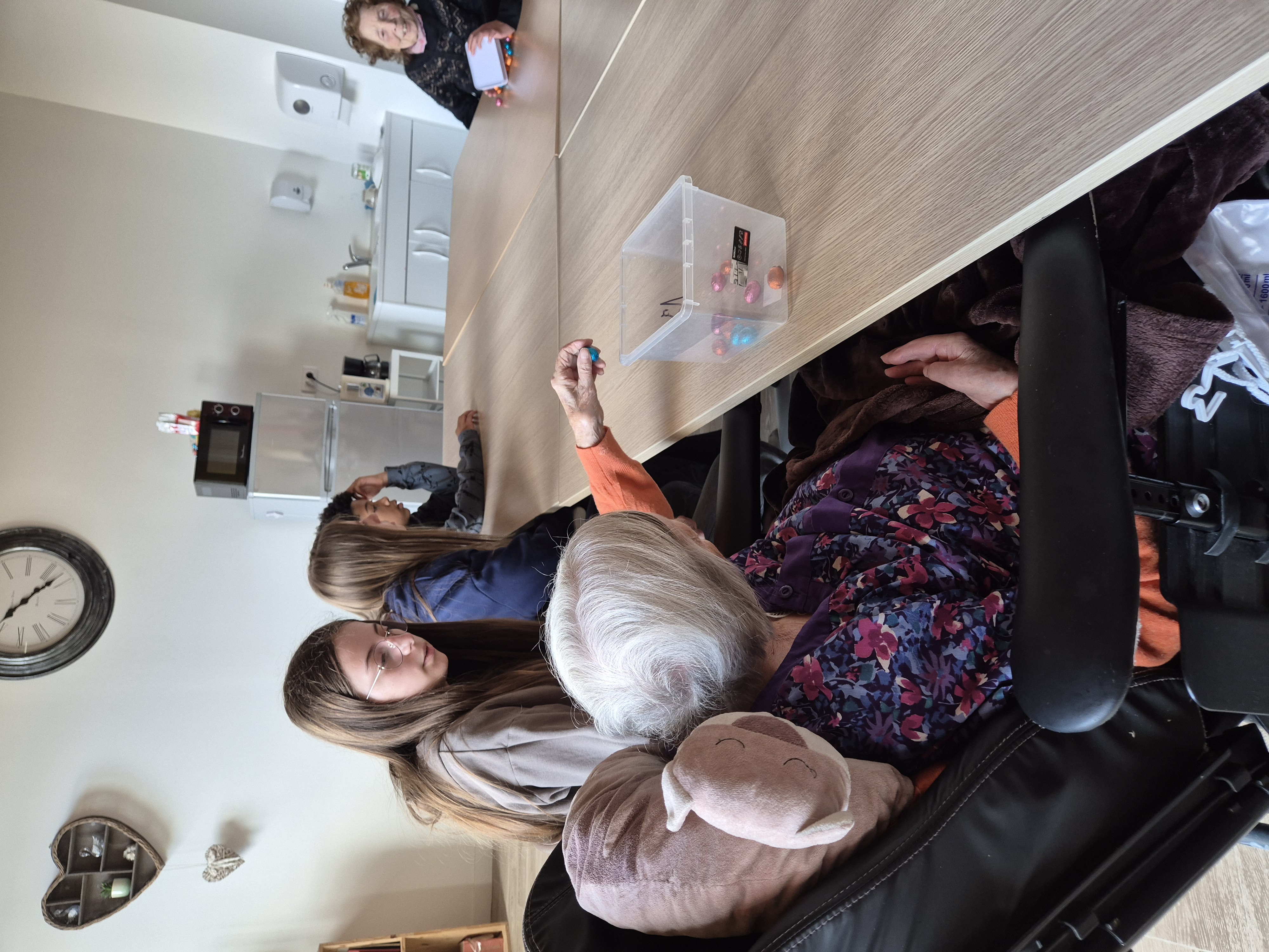 Les résidentes et leurs responsables Mme MENDES ont été ravies d’accueillir les élèves pour une chasse aux œufs !
