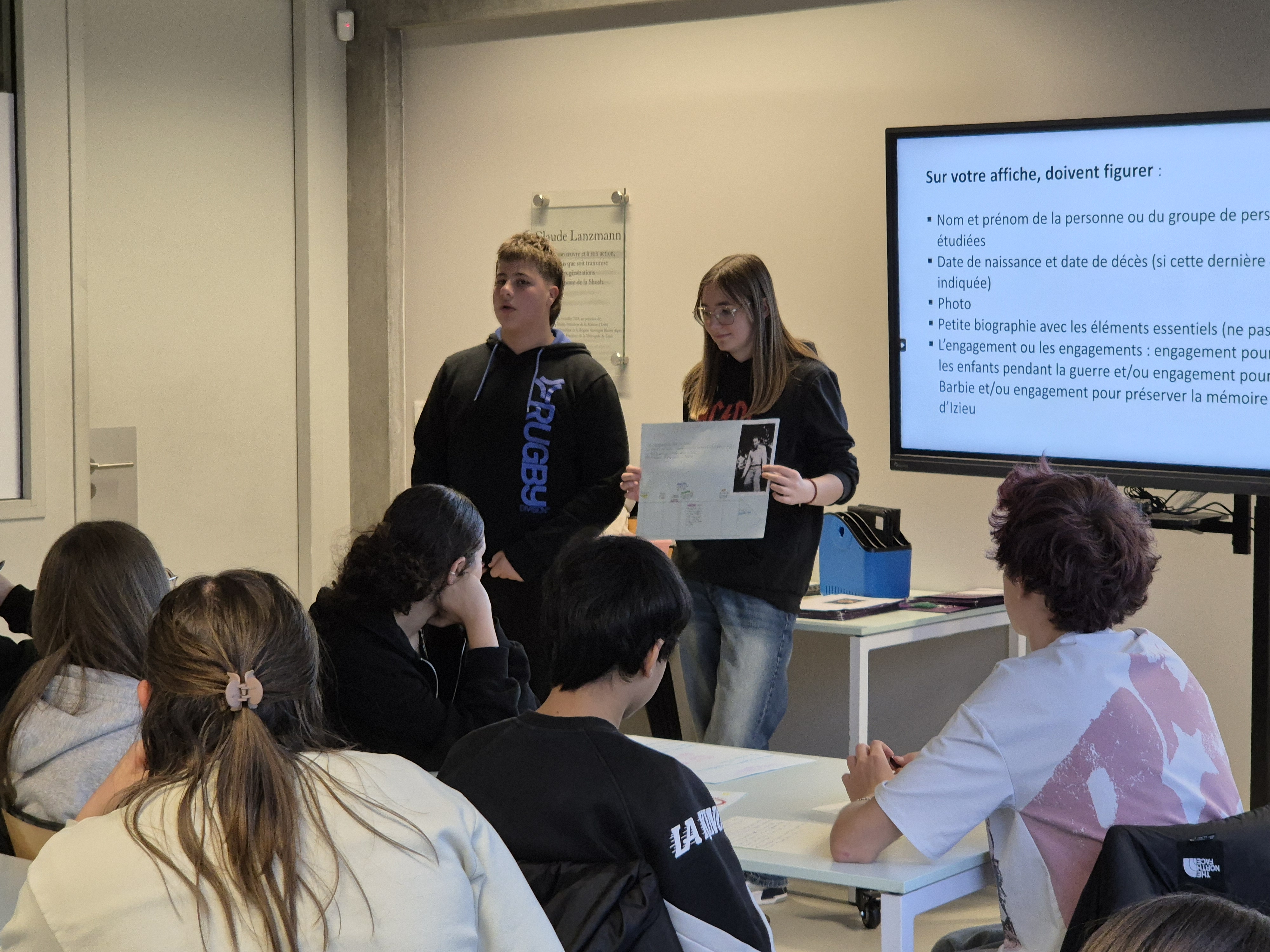 Durant la matinée, les élèves ont donc pu travailler sur cette thématique à travers des ateliers durant lesquels ils ont étudié les biographies des personnes ayant œuvré pour protéger les enfants d’Izieu : Sabine et Miron ZLATIN, Gabrielle PERRIER-TARDY ou encore Léa FELDBLUM. Ils ont réalisé des affiches de chacune de ces personnes en mettant en évidence leurs engagements.