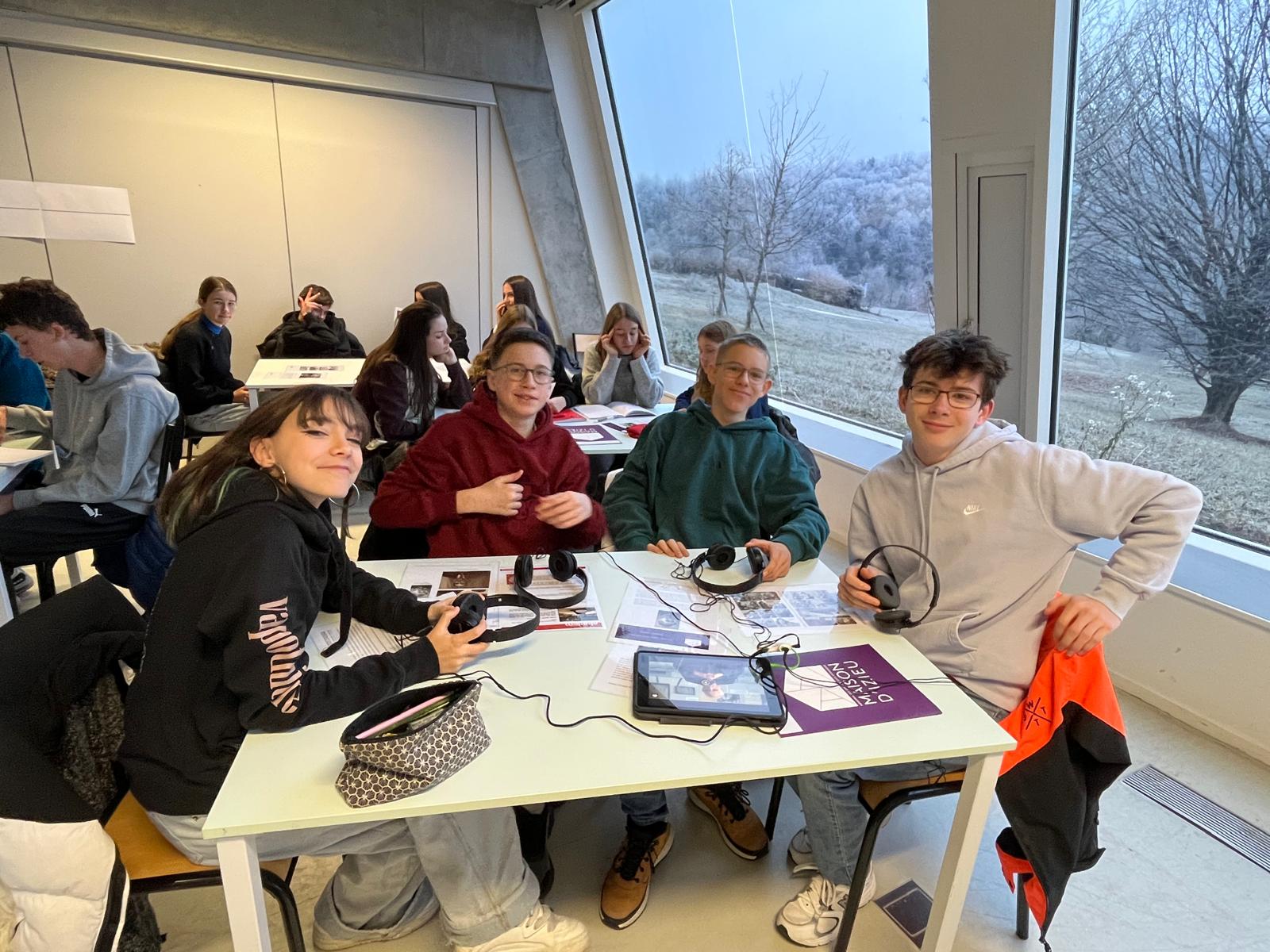 L’après-midi fut consacrée à la visite guidée de l’exposition ainsi que de la maison d’Izieu : ils ont pu lire des lettres écrites par les enfants juifs présents à l’époque, visiter leur salle de classe et les pièces dédiées aux dortoirs : pièces où sont exposées les photographies des 44 enfants de la colonie qui ont été déportés et assassinés à Auschwitz.