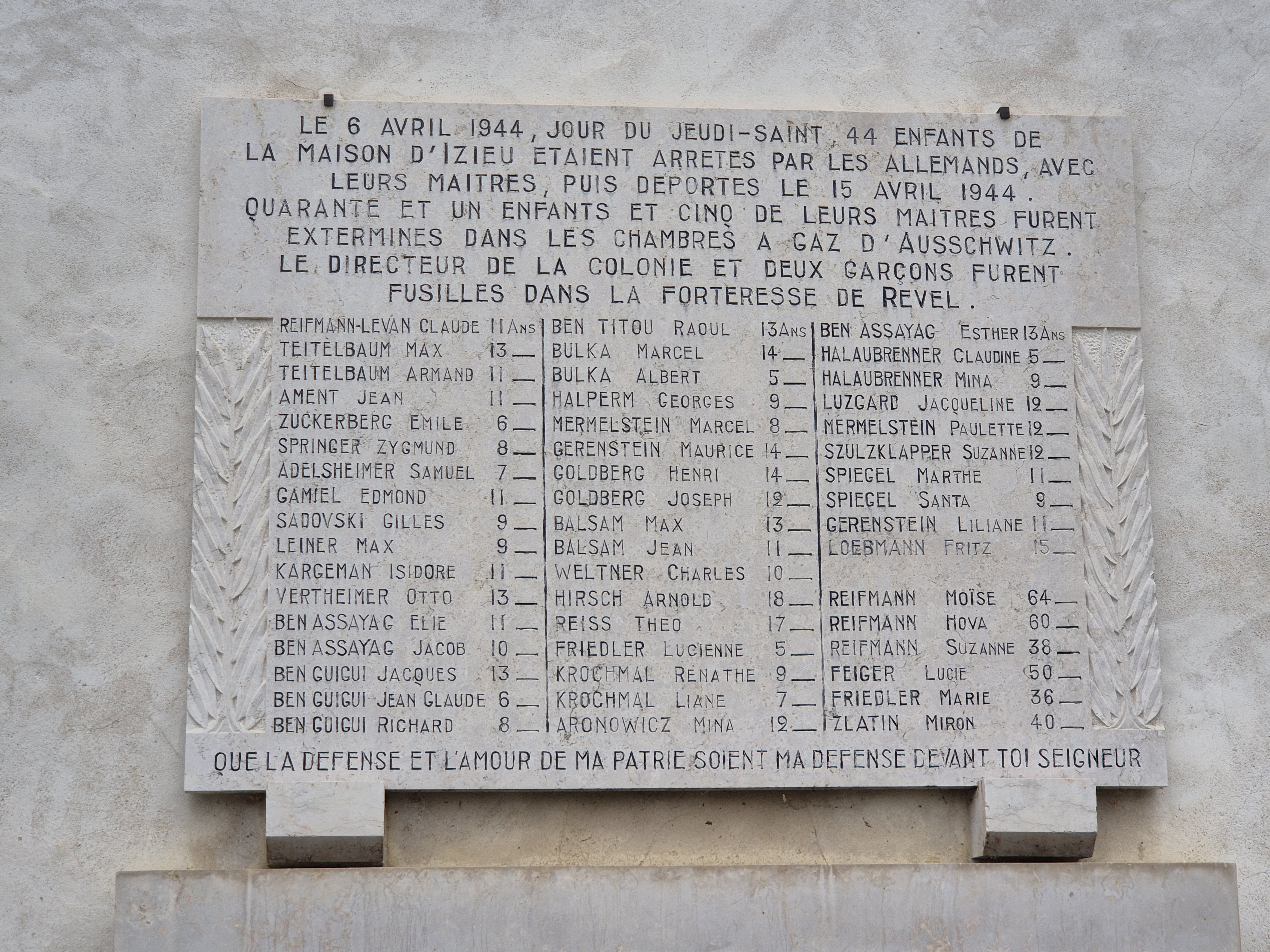 Entre 1943 et 1944, cette maison a accueilli une colonie d’enfants juifs réfugiés, fondée par Sabine et Miron ZLATIN, afin de les protéger des persécutions nazies et des rafles. C’était un lieu de refuge et de passage pour ces enfants. Mais le 6 avril 1944, la Gestapo de Lyon, dirigée par Klaus BARBIE, a organisé une rafle dans la maison : 44 enfants et 7 éducateurs sont arrêtés et déportés. La quasi-totalité des enfants est assassinée à Auschwitz. Aucun ne survivra. Après la guerre, cette maison devient un lieu de recueillement et de transmission. Elle est aujourd’hui le Mémorial des enfants d’Izieu, dédié à la mémoire des victimes.